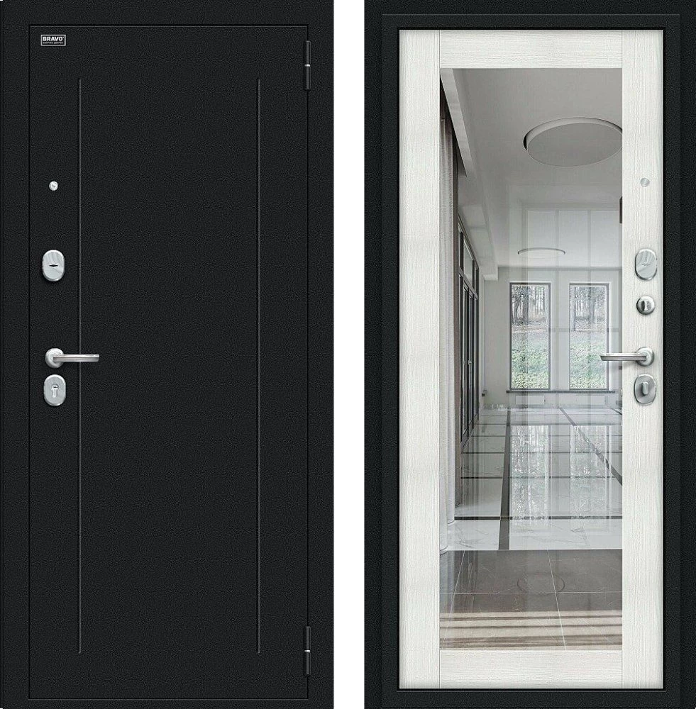 Надежная входная Дверь Браво Флэш Букле черное/Bianco Veralinga премиум класса по цене 32 733 руб. Большая толщина стали защитит от проникновения в ваш дом, квартиру или коттедж. Используется очень качественная фурнитура: замки, цилиндры, ручки, защелки. Покрытие и отделка двери изготовлено под внимательным контролем производителя. Дверь имеет долгий срок службы и гарантию.
